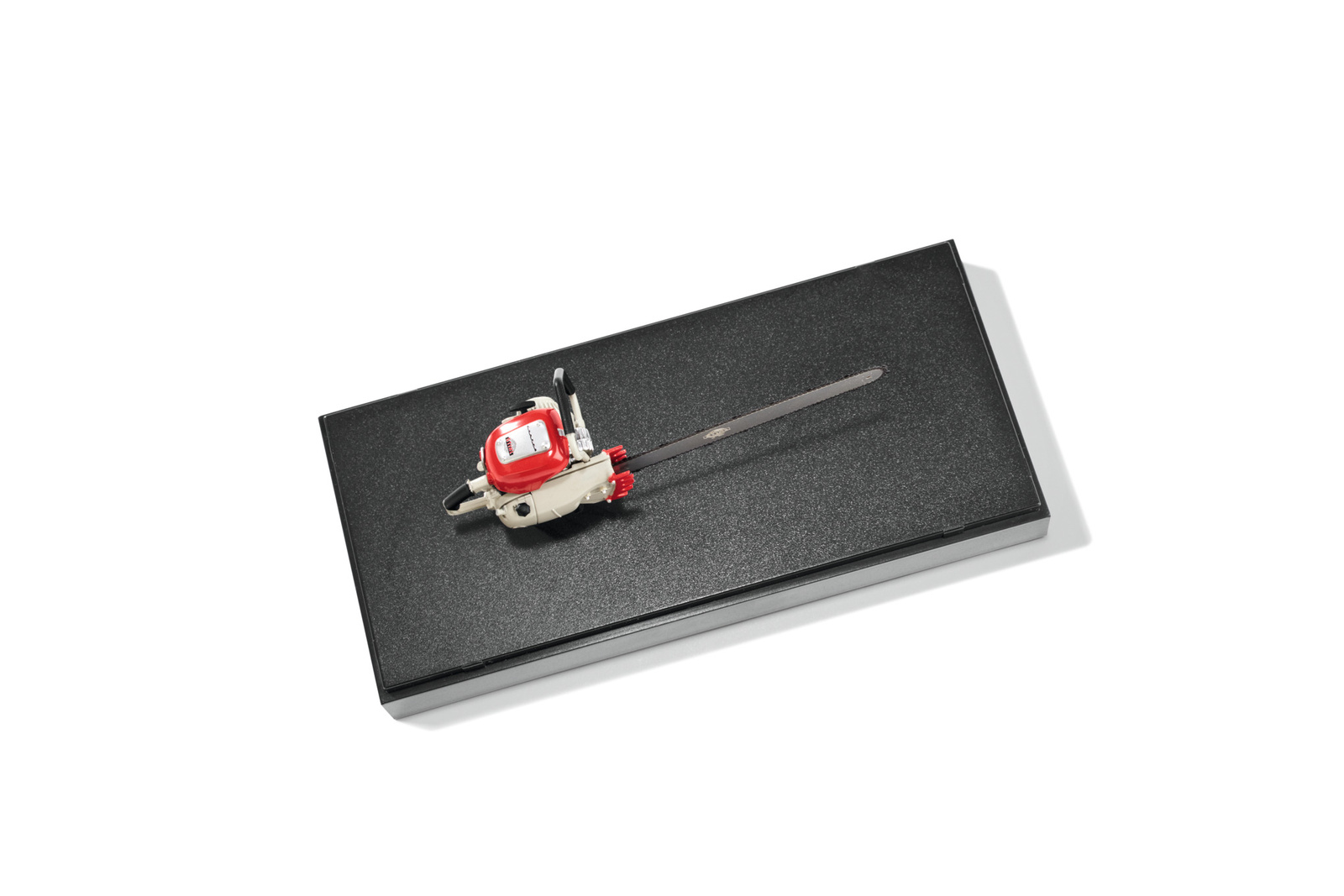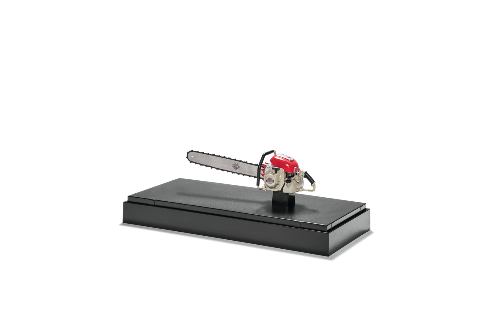 Model kolekcjonerski kultowej pilarki Contra, konstrukcja ciśnieniowego odlewu cynkowanego, malowany oryginalnymi farbami, postument z tworzywa, przezroczyste opakowanie ochronne. Made by Schuco, skala 1:12.