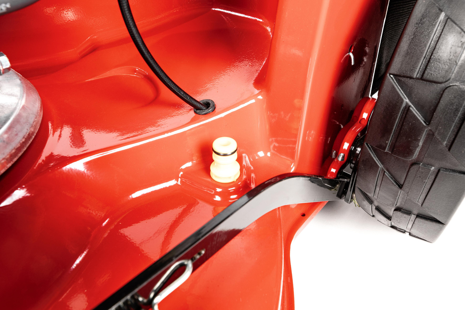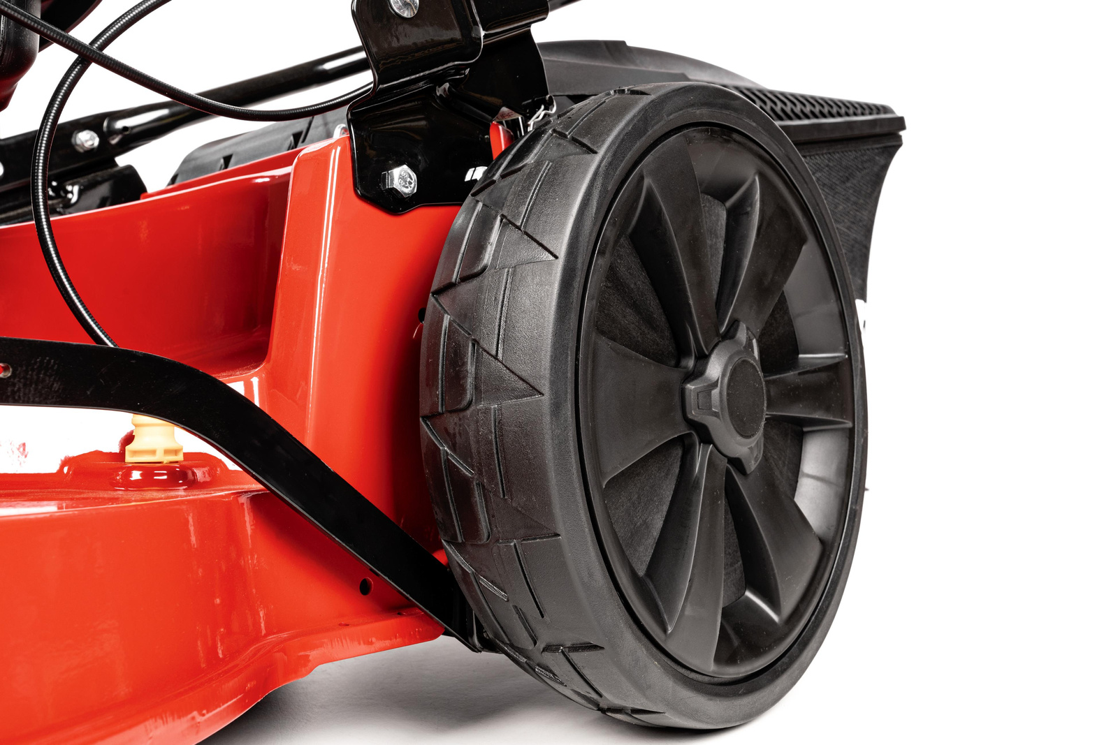 - przedni uchwyt ułatwiający czyszczenie kosiarki