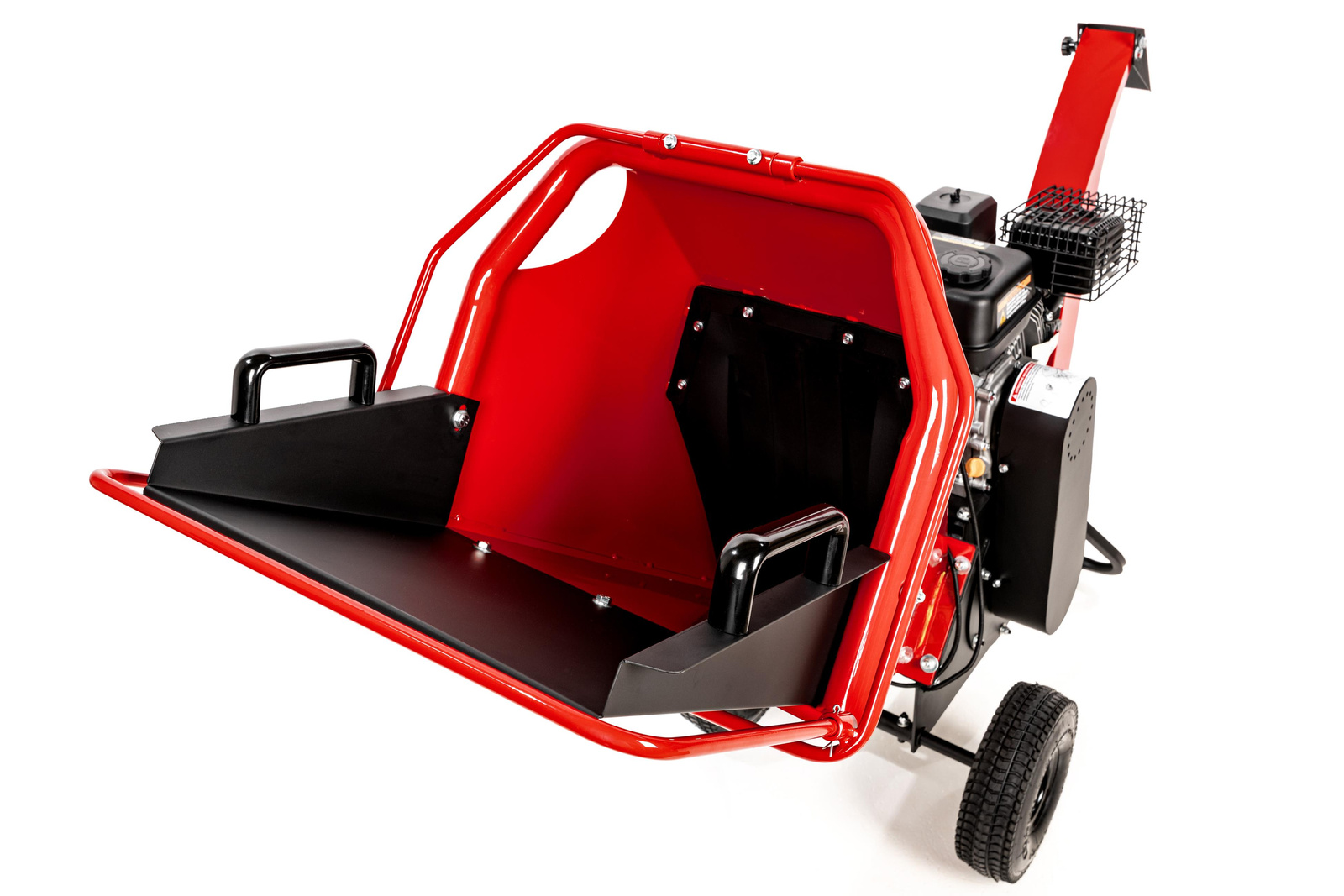 - szeroki otwór podajnika z gumą zabezpieczającą przed wyrzuceniem zrębka w stronę operatora,