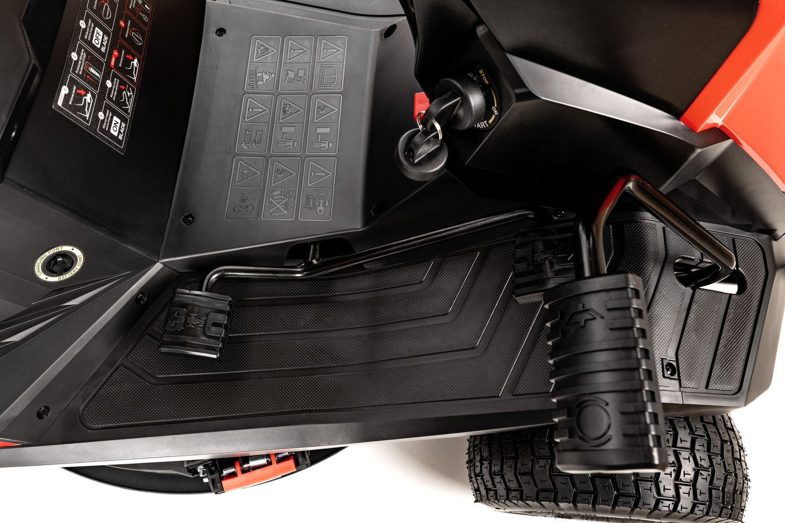 • Opcje koszenia i rozdrabniania – traktorek oferuje funkcje koszenia, wyrzutu oraz mielenia, co sprawia, że jest uniwersalnym narzędziem do pielęgnacji ogrodu.